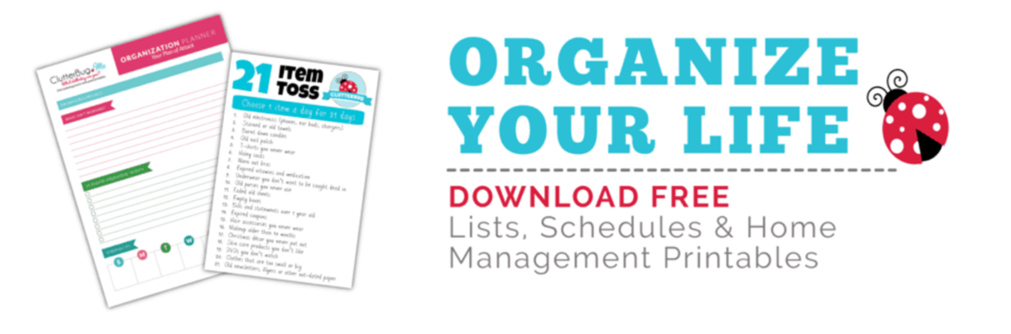 Clutterbug.me an amazing resource for organizing tips – On the Clutterbug website, you will find an amazing range of media, from books to podcasts, printable and but of course links to her Youtube videos.