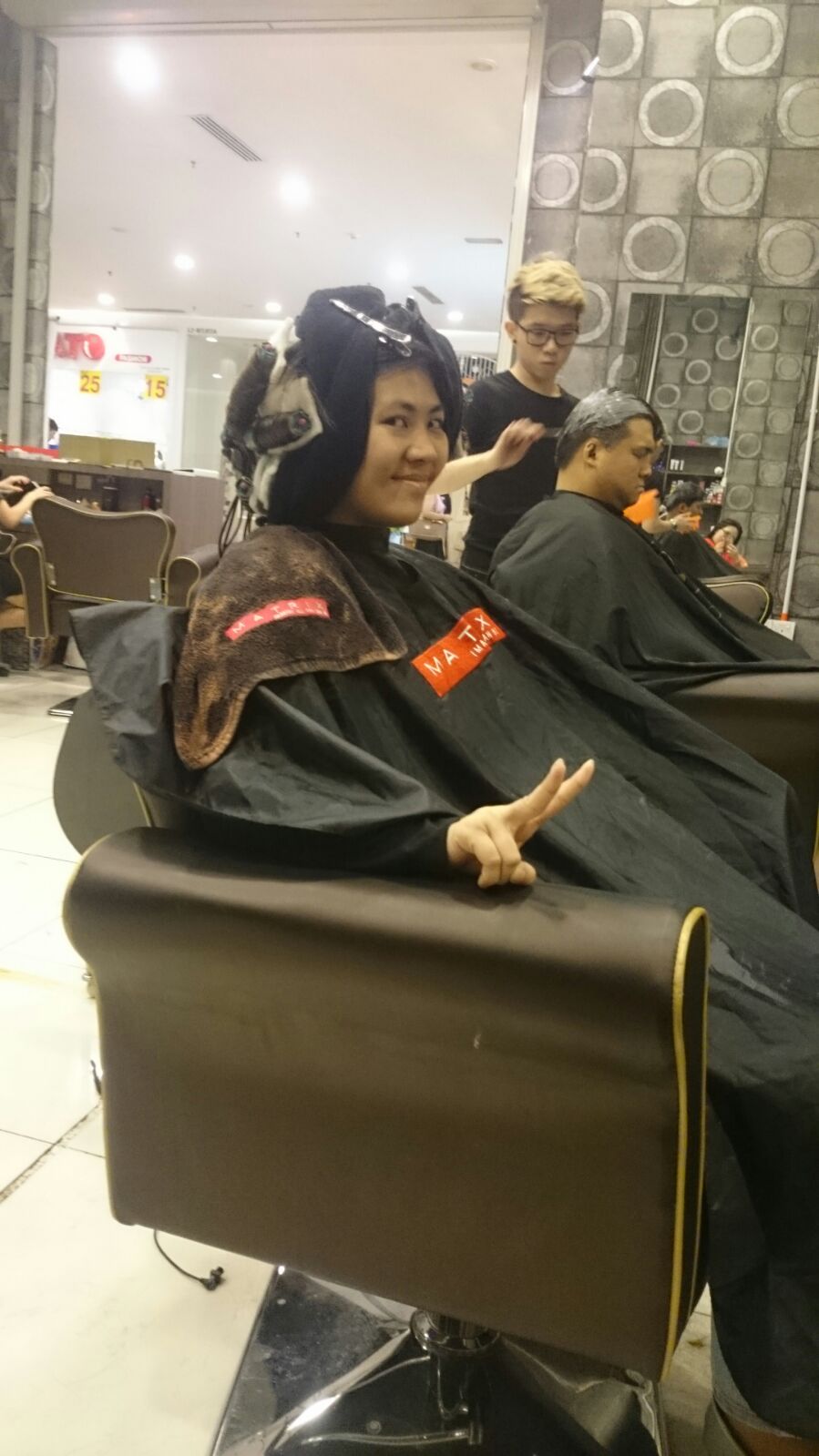 I wanted to perm my hair to have a change from the straight rebonded look that I was used to and bored with. The stylist was patient and professional, advising us on which colours would go together better.