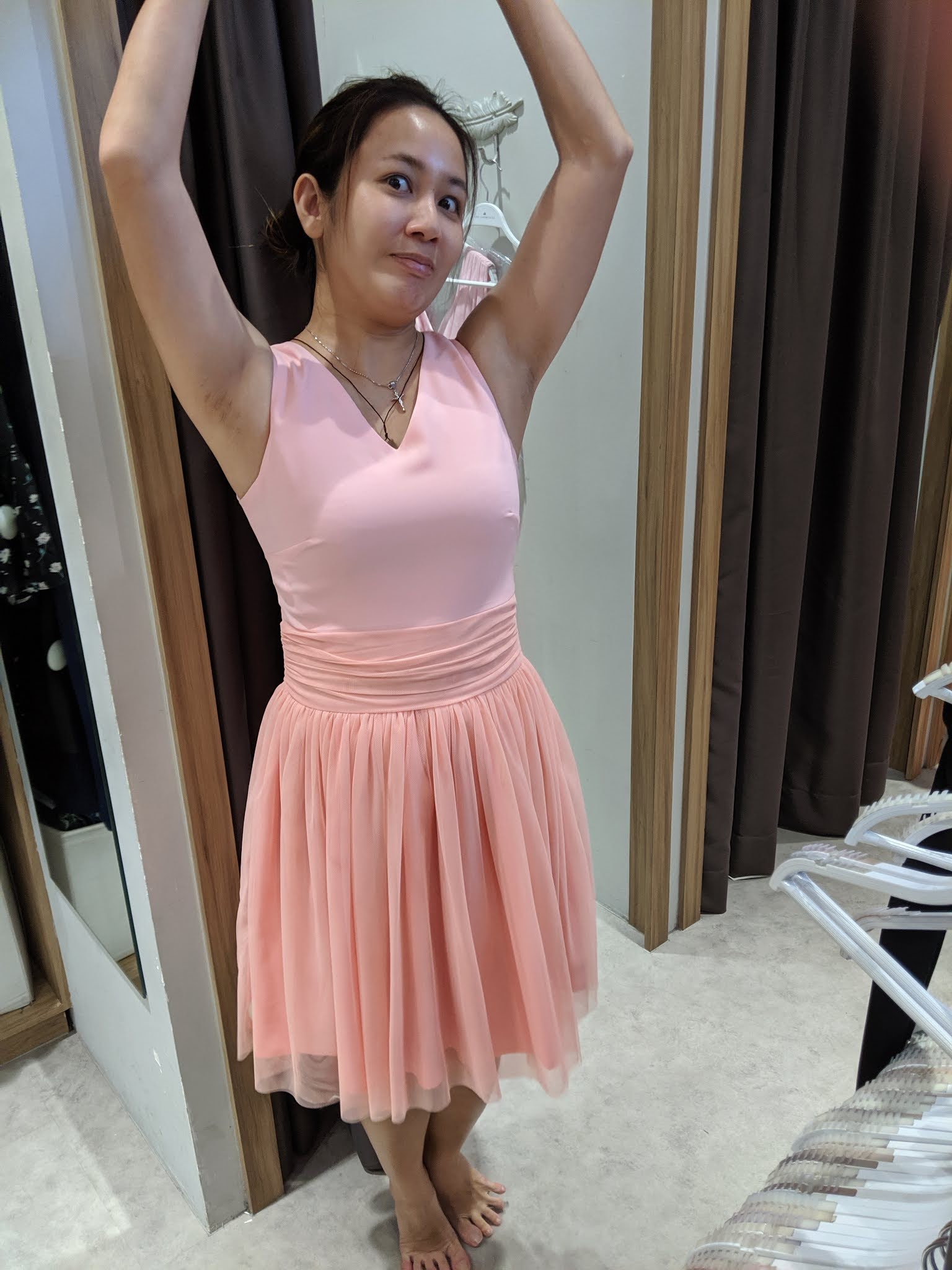 Where to find bridesmaid dresses in Singapore- our first destination was Funan Mall, where there are Love Bonito and a couple of other blog shops. Unfortunately, nothing in season matched our criteria. I chanced upon The BMD store which has a pleasant selection of bridesmaid dresses, as they were available at The showcase store in Tampines the ladies and I went down one evening to try out their collection.