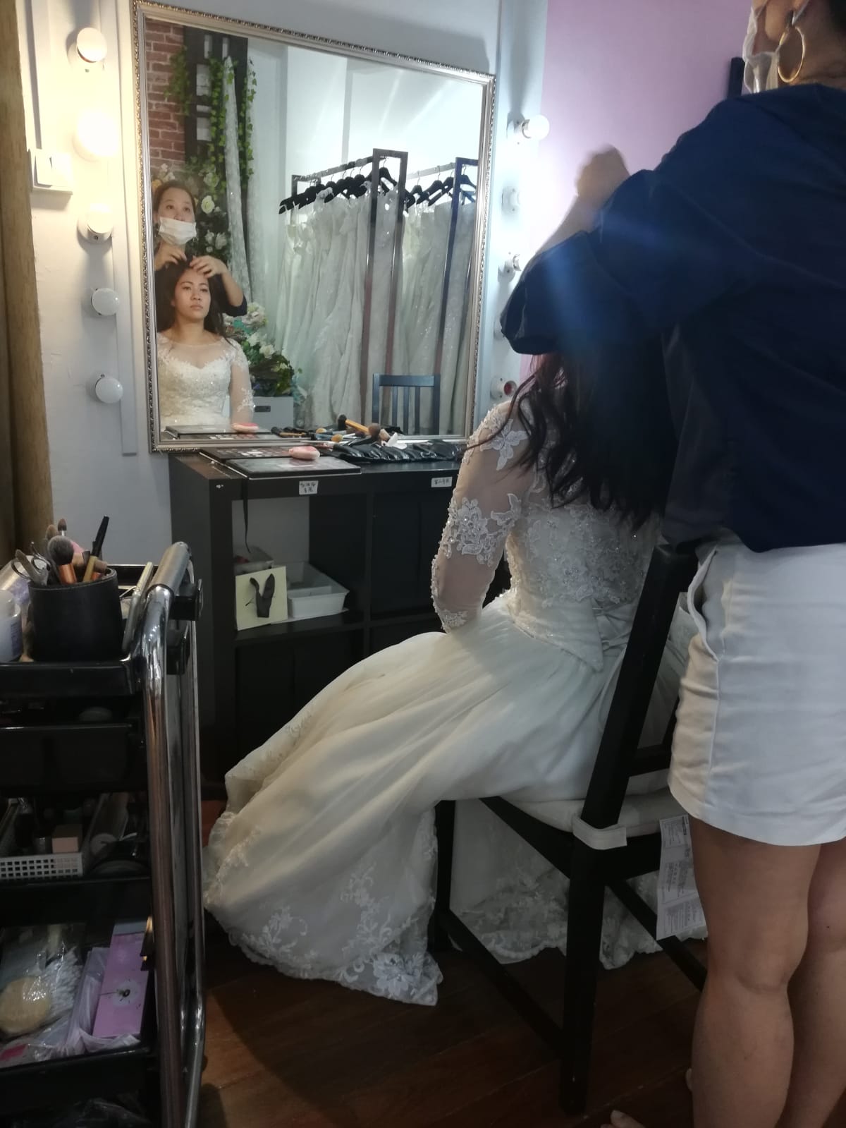 Pre-wedding shoot gowns and suit – The final fitting of my gowns and dear’s suits for our pre-wedding photography was done a couple of days before to ensure that everything fitted well. I had lost a couple of inches and a quick of adjustment had to be done. Xiao Ting also assigned my make-up artist to me, Christine Tan who contacted me the same evening via WhatsApp. Xiao Ting also took note on what kind of feel we would like for our photos, props to be used etc. She asked us a series of questions and I just told her we wanted a very simple photoshoot, filled with nature.