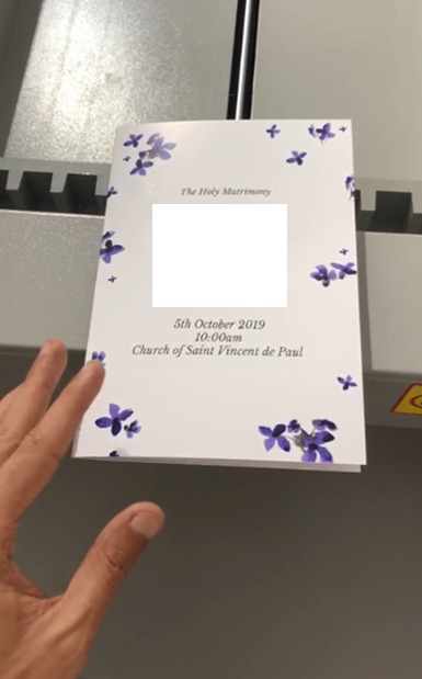 Printing wedding mass booklets – I began my search online and contacted a few local artists and vendors the price range was usually $1000.00 for 300 cards plus design work. Some companies don’t even bother replying to my enquiry while others patiently answer my questions. I also approached a printing shop named Print and Repair, they introduced me to https://www.greetingsisland.com/ where there were many beautiful designs that you could use for free with their watermark behind the card. I used this site for the covers of my church booklets for a fee of $30.00 the alignments of the text were adjusted by page for me the total cost of 70 booklets was only $121.00 with glossy paper. They even sent me a video clip of the completed booklet being flipped to check if all was in order. I highly recommend https://printrepair.sg/ for its excellent service and quality printing.