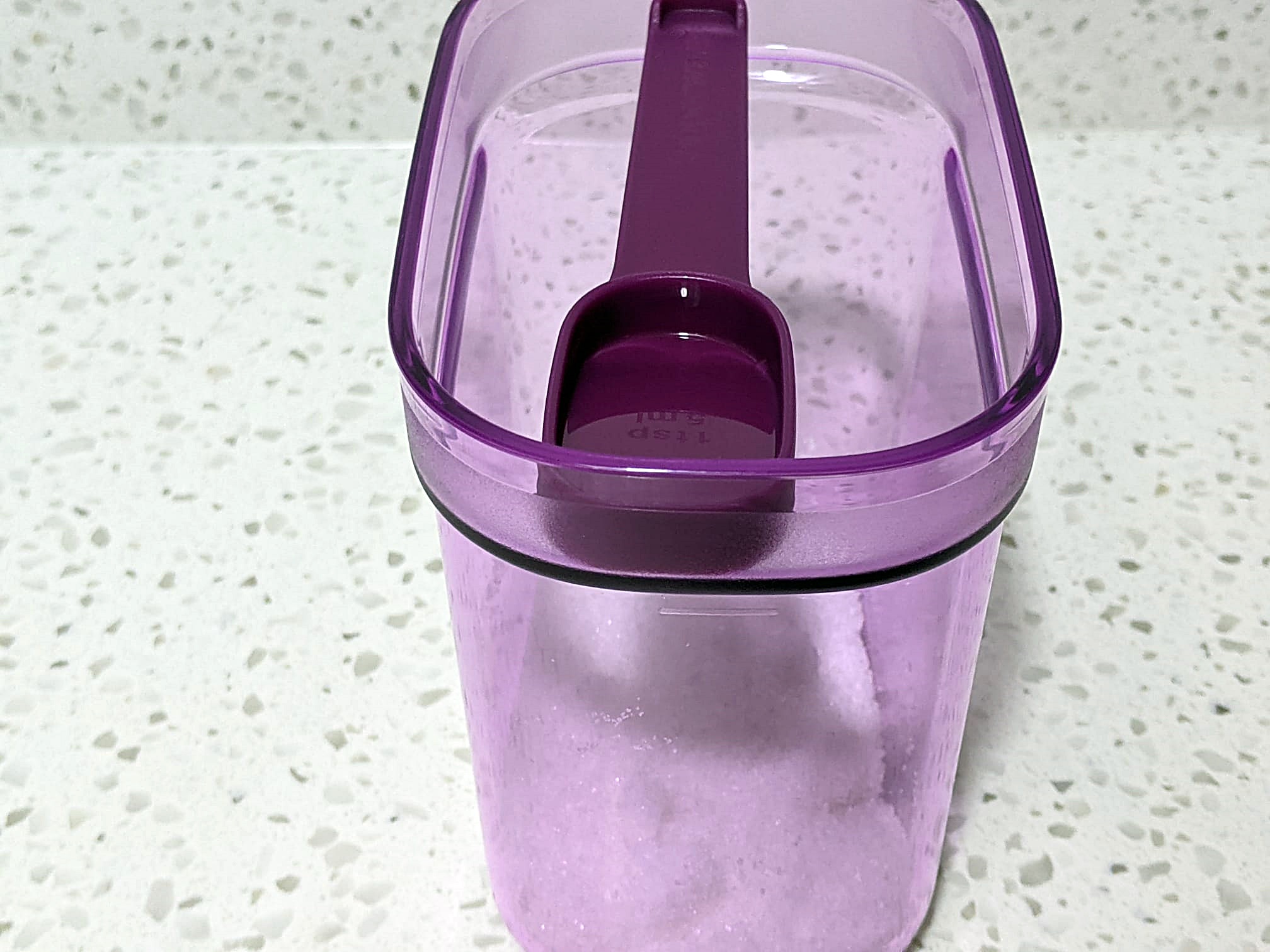 Storing salt and sugar-I recently purchased the Tupperware Umami Collection spice container 500ml to store my salt and sugar. , I really like the smart and intuitive design of this Tupperware store container. This spice container is airtight, the lid is easy to open and spill-proof keeping the contents fresher longer. I like my container to be clear as I can easily check at a glance the amount that is left when I prepare my grocery shopping list.