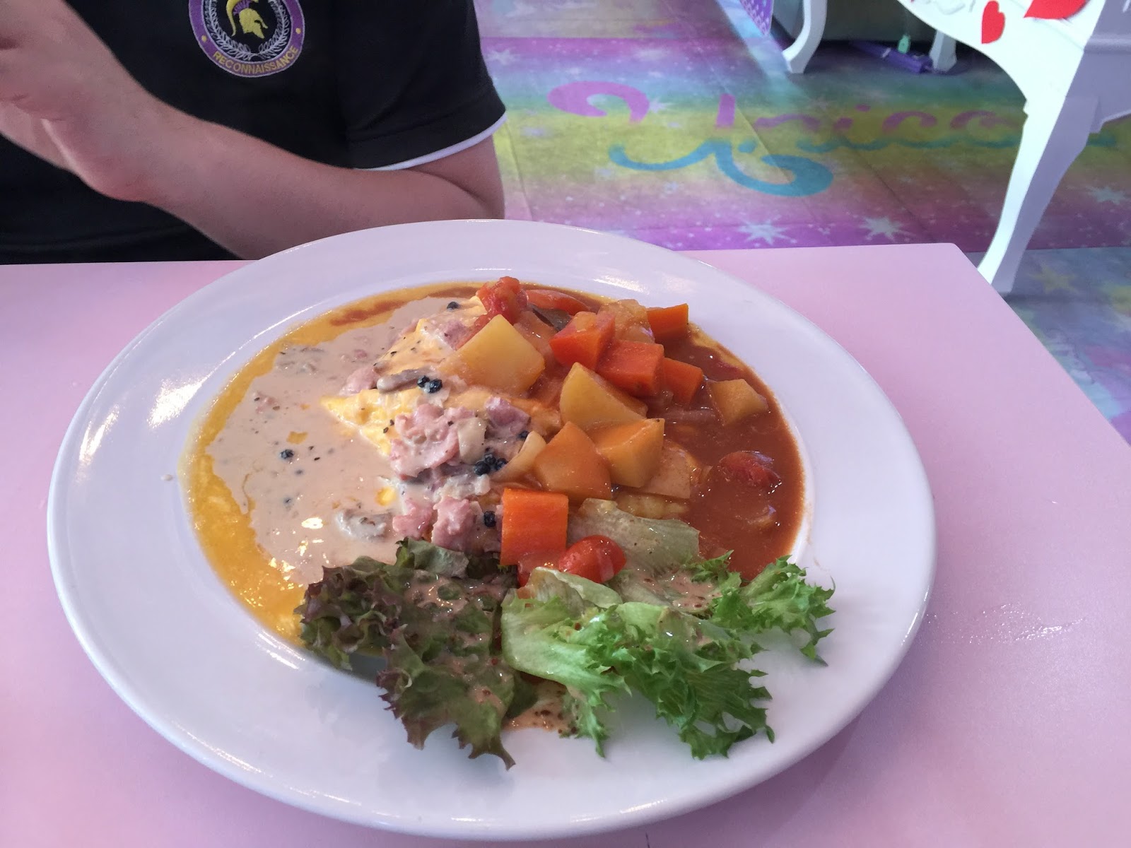 The rainbow-coloured pasta was tasty, but I did get sick of the cream sauce after a while. That is always the case with creamy pasta for me.