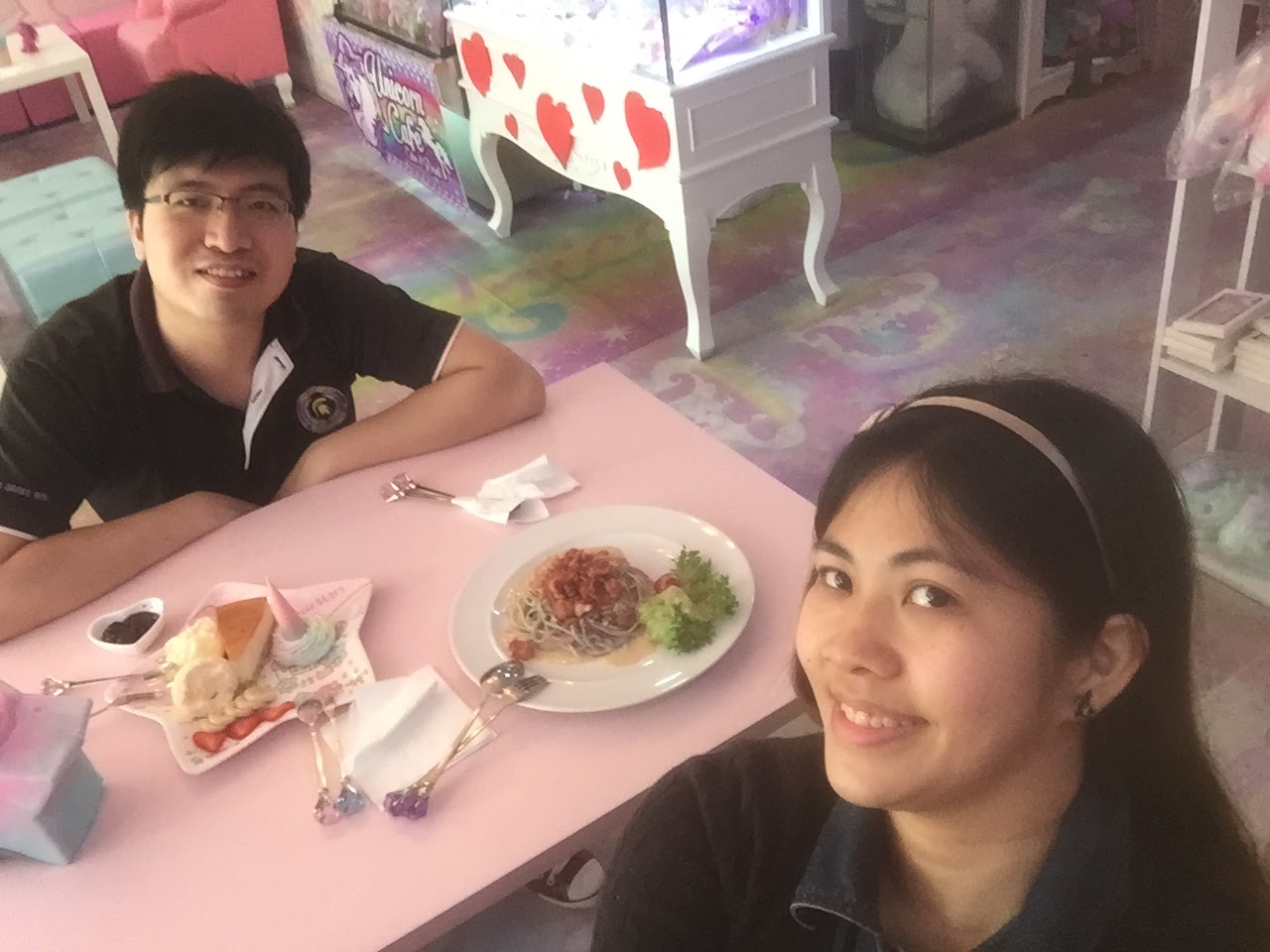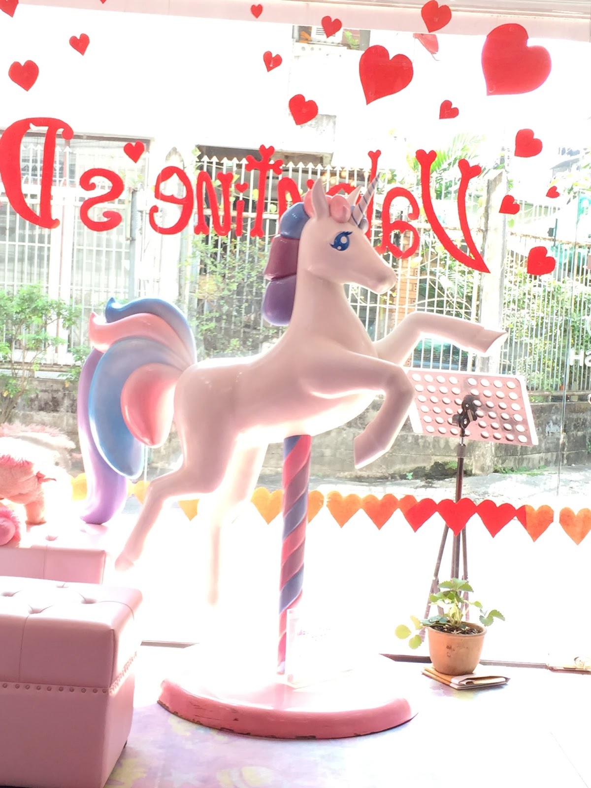 It is a small cafe dawned in pastel colours, honestly eye-catching, admits the grey of the street. It happens to be the week of valentine’s day, and the store was all prepped up for the occasion with substantial red hearts displayed on the window.