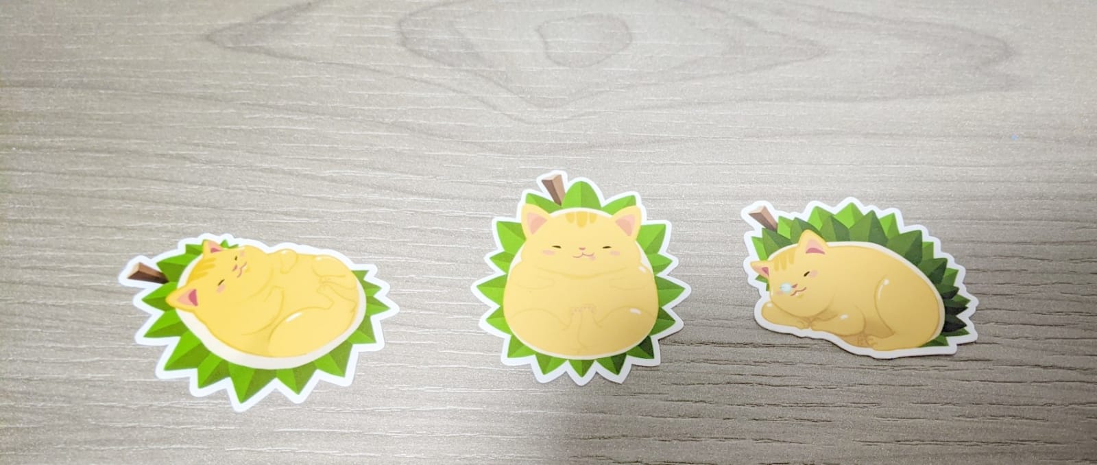 I used to collect stickers back in Primary School. Would get angry when my younger sister traded my “pretty” stickers for “ugly” common ones. I just started using Tic ock lately and I love the exposure to many small businesses one that really caught my eye was Fei Mao LiuLian/Fat Cat Durian it somehow rekindled my love for stickers. As an adult stickers can be used to decorate almost anything, in my case I will be using them to different shade my mug from others in the office. Everyone is given the same corporate mug so adding an adorable sticker would help me different shade my mug from others.