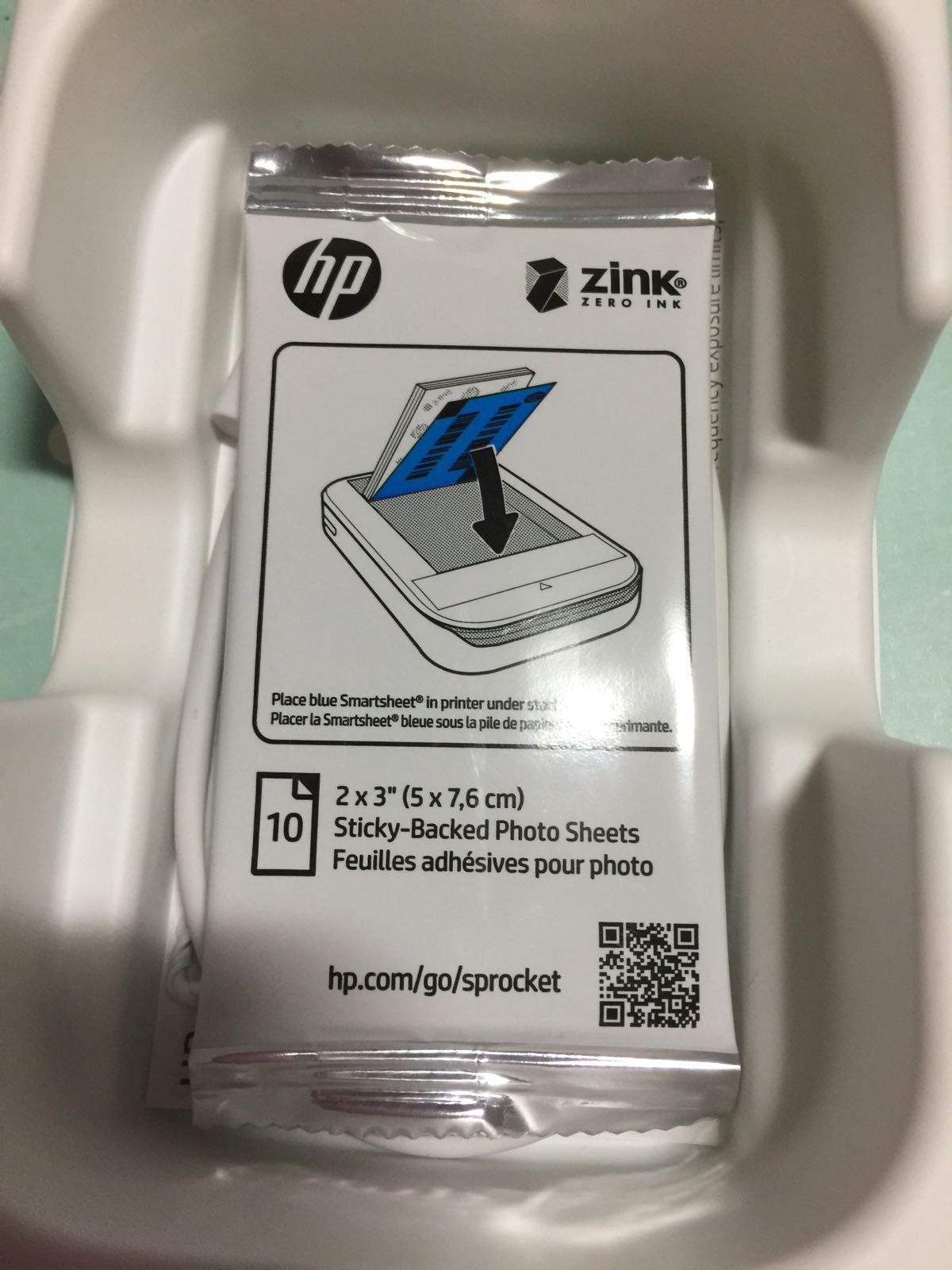 Price of the Hp Sprocket Printer Paper – Retailing at $15.90 for 20 sheets the Zink paper has a sticker backing and is matt finished. It dimension is 2 x 3 inch or 5 x 7.6-cm. As the name suggests no ink cartridge is required. The paper consists of advanced composite dye crystals with colours cyan, yellow, and magenta embedded in the paper and a protective polymer overcoat layer outside. The crystals appear clear before printing giving the impression of regular white photo paper.